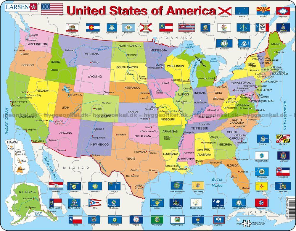 USA kort med stater og seværdigheder Check Point Travel Her kan du købe Kort over USA Rammepuslespil, 48 brikker!.